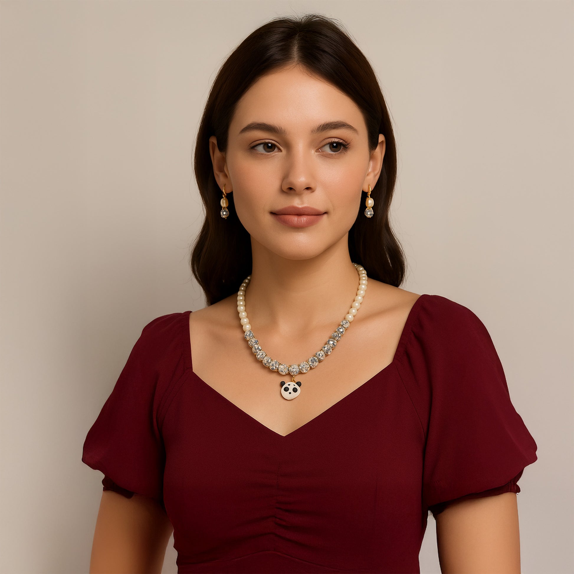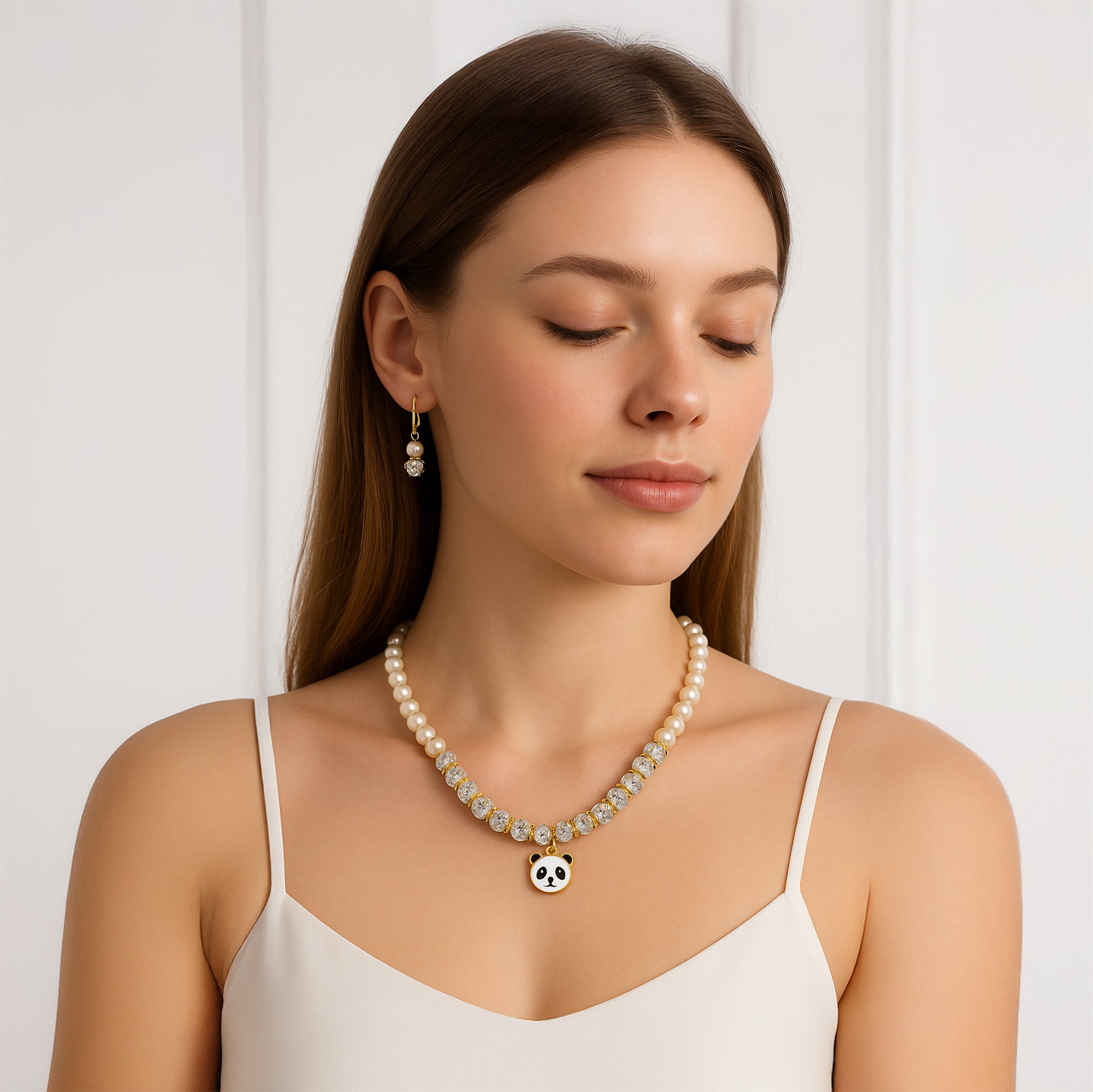 This versatile set transitions effortlessly from day to evening wear, adding a unique and charming accent to both traditional and contemporary outfits. The timeless appeal of pearls combined with the playful panda charm makes this an ideal gift or a delightful addition to your jewelry collection.