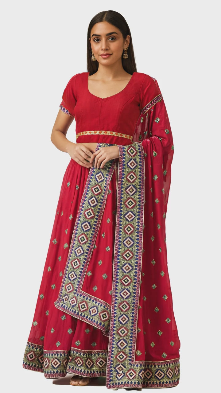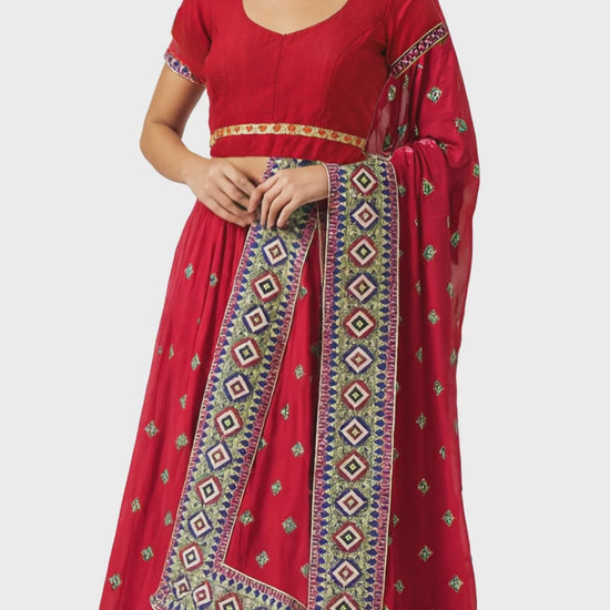 Red Embroidered Lehenga Set with Dupatta