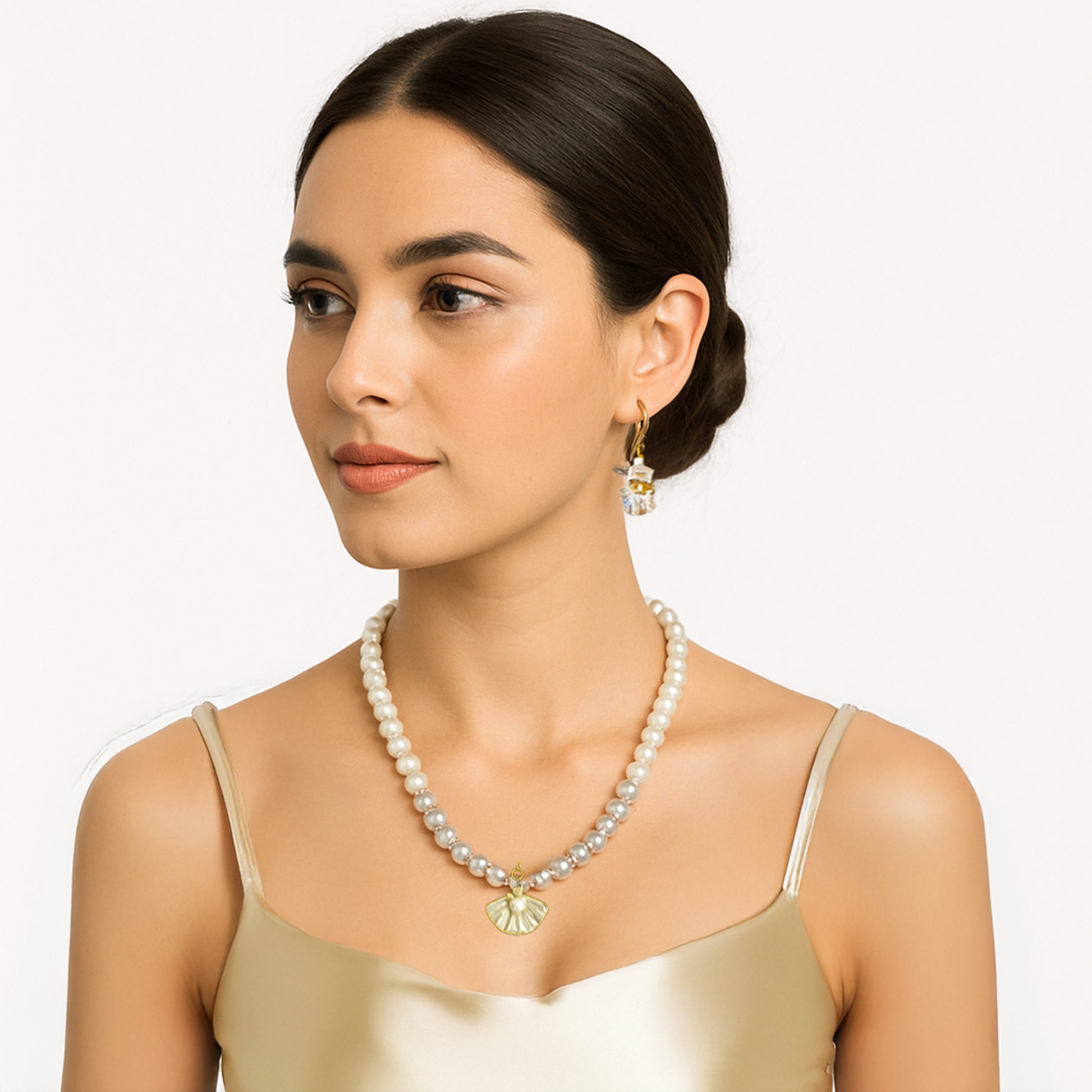 - Premium Materials: Genuine white pearls, crystal spacers, shell pendant, and gold-tone findings